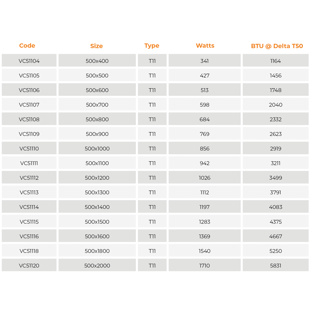 Compact 500mm Single Radiator Range